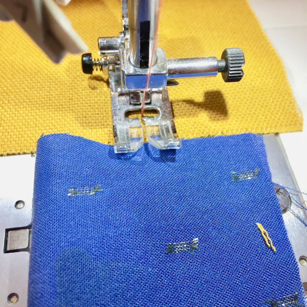 Une autre solution: le pied de biche « point droit » – c’est un pied avec un pout petit trou pour l’aiguille, le tissu donc est bien plaqué contre les griffes et mieux entrainé. En prime ça donne le point très droit. Toujours, faites attention au centrage de l’aiguille pour ne pas la casser.